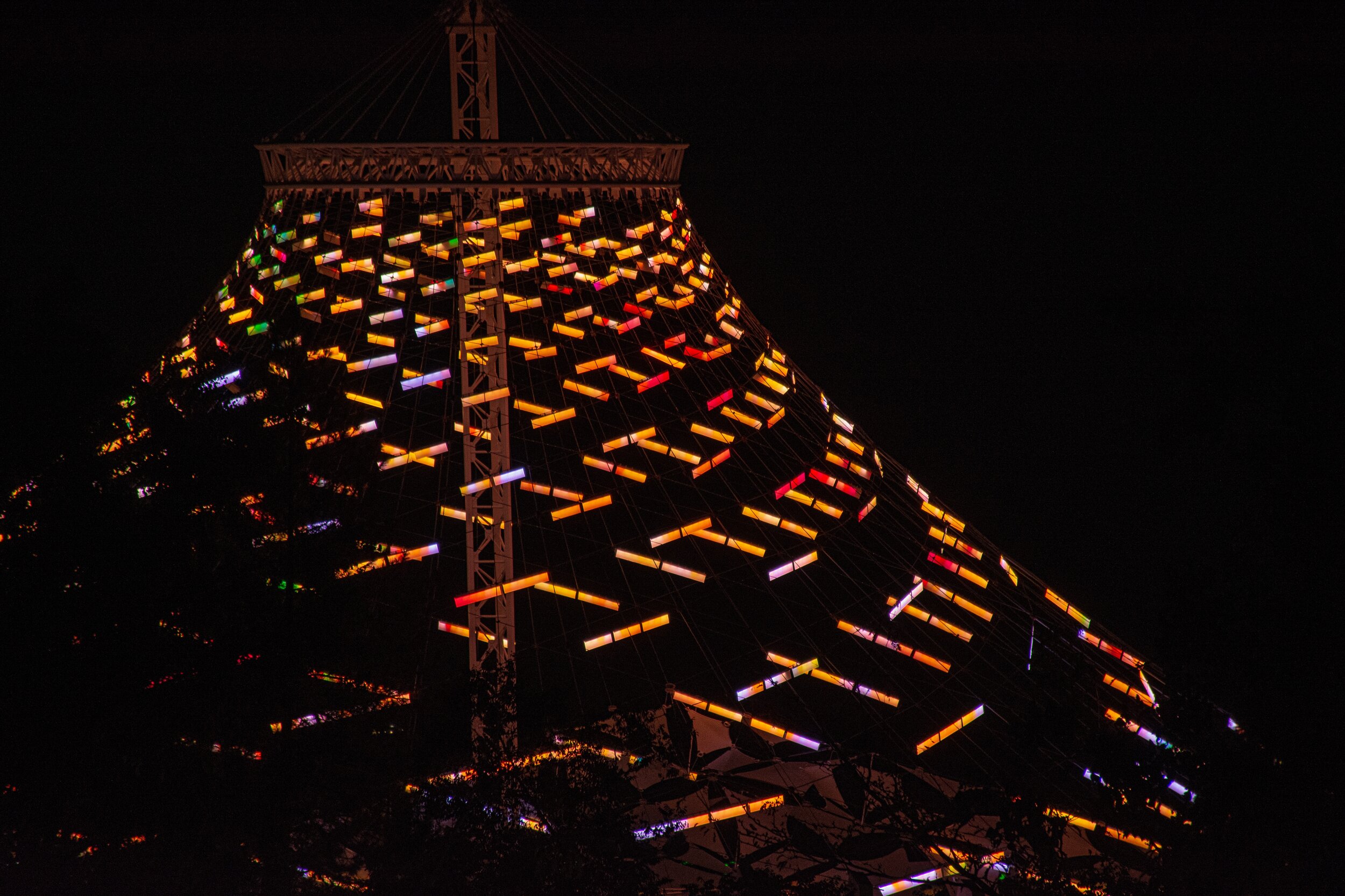 We were not only responsible for ensuring all fixtures worked correctly, but also designing and implementing the light effects. This system is programmed to automatically play a seasonal show every night, but the local park staff can override the lighting anytime to create their own effects.